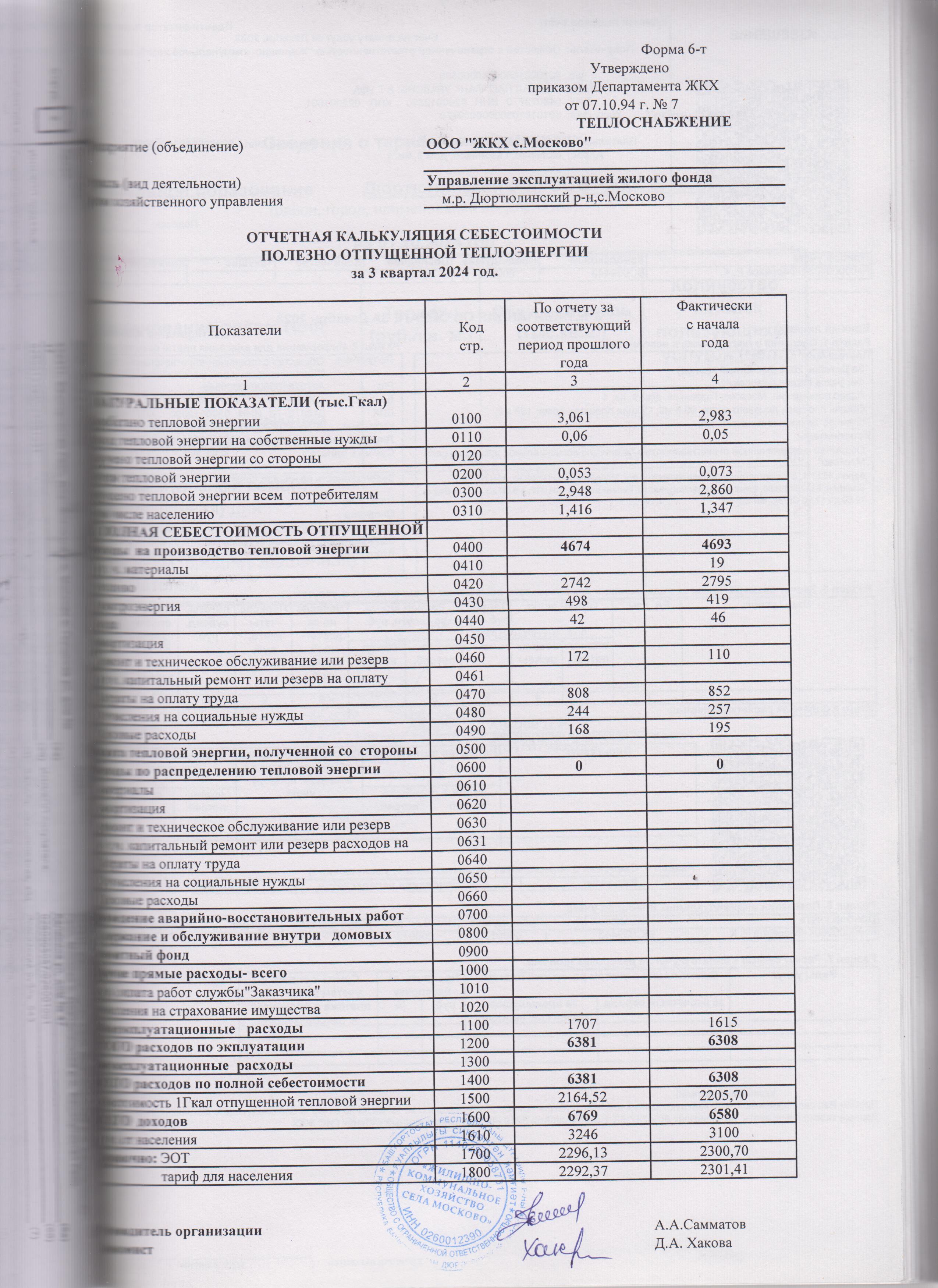 Отчетная калькуляция себестоимости полезно отпущенной тепловой энергии за 3 квартал