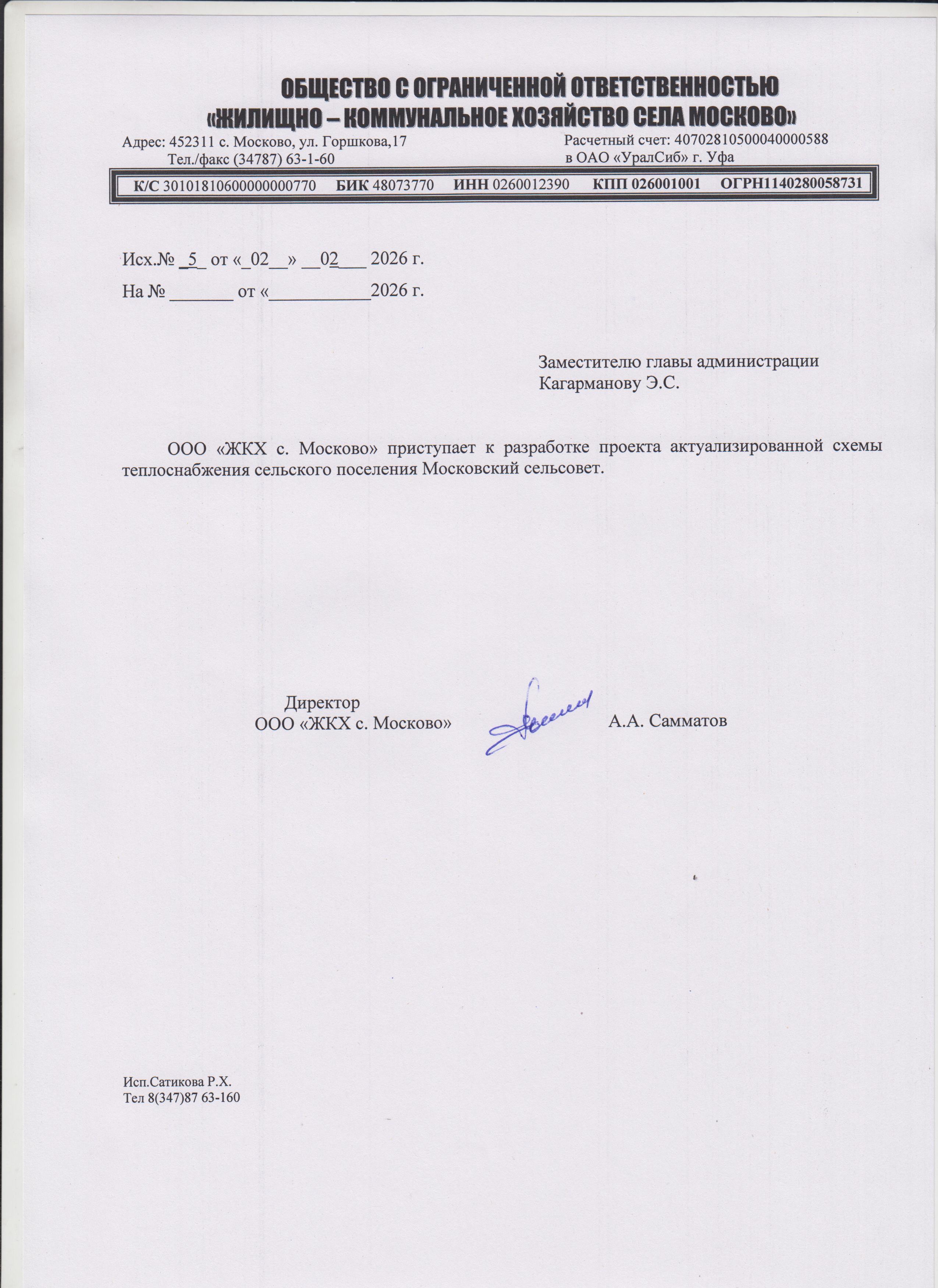 Схема теплоснабжения СП Московский сельсовет Муниципального района Дюртюлинский район РБ